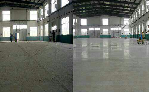 2、機械壓光地面和耐磨地面使用硬化劑后經拋光會立即出現(xiàn)光澤,時間越長,感觀效果越好;